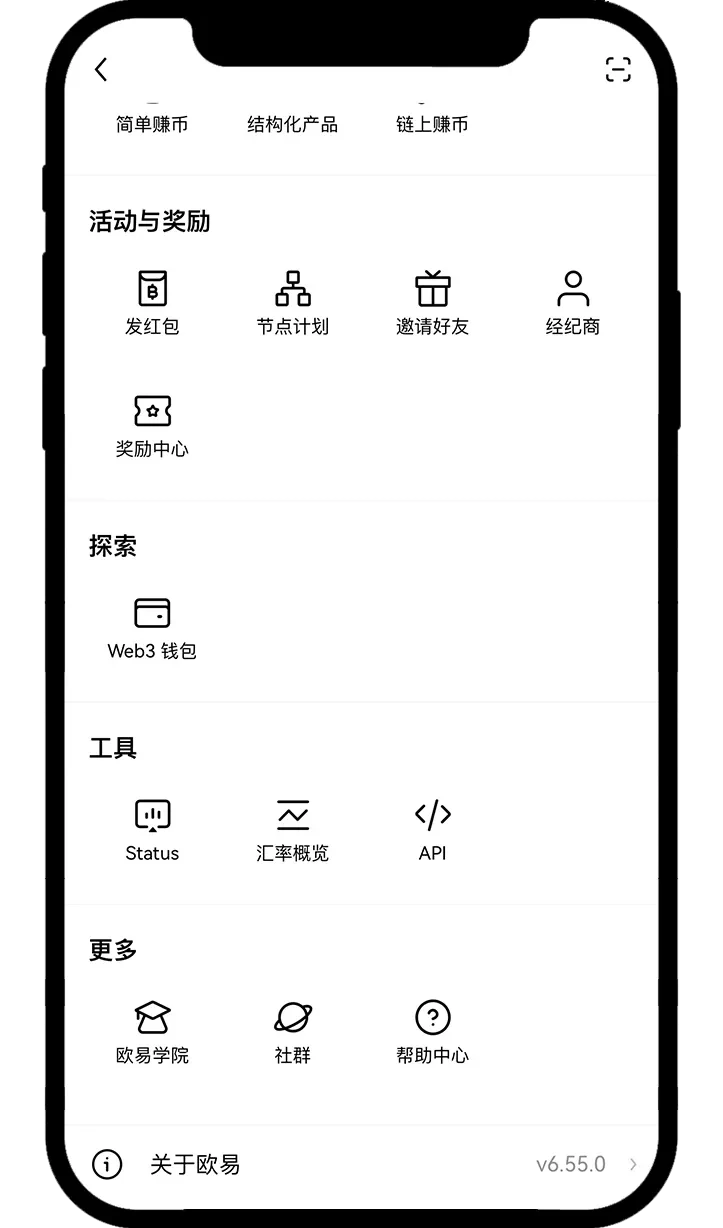 点击 App 首页左上角图标 -> 底部【关于欧易】 -> 【检查更新】。如有新版本,点击【立即更新】。